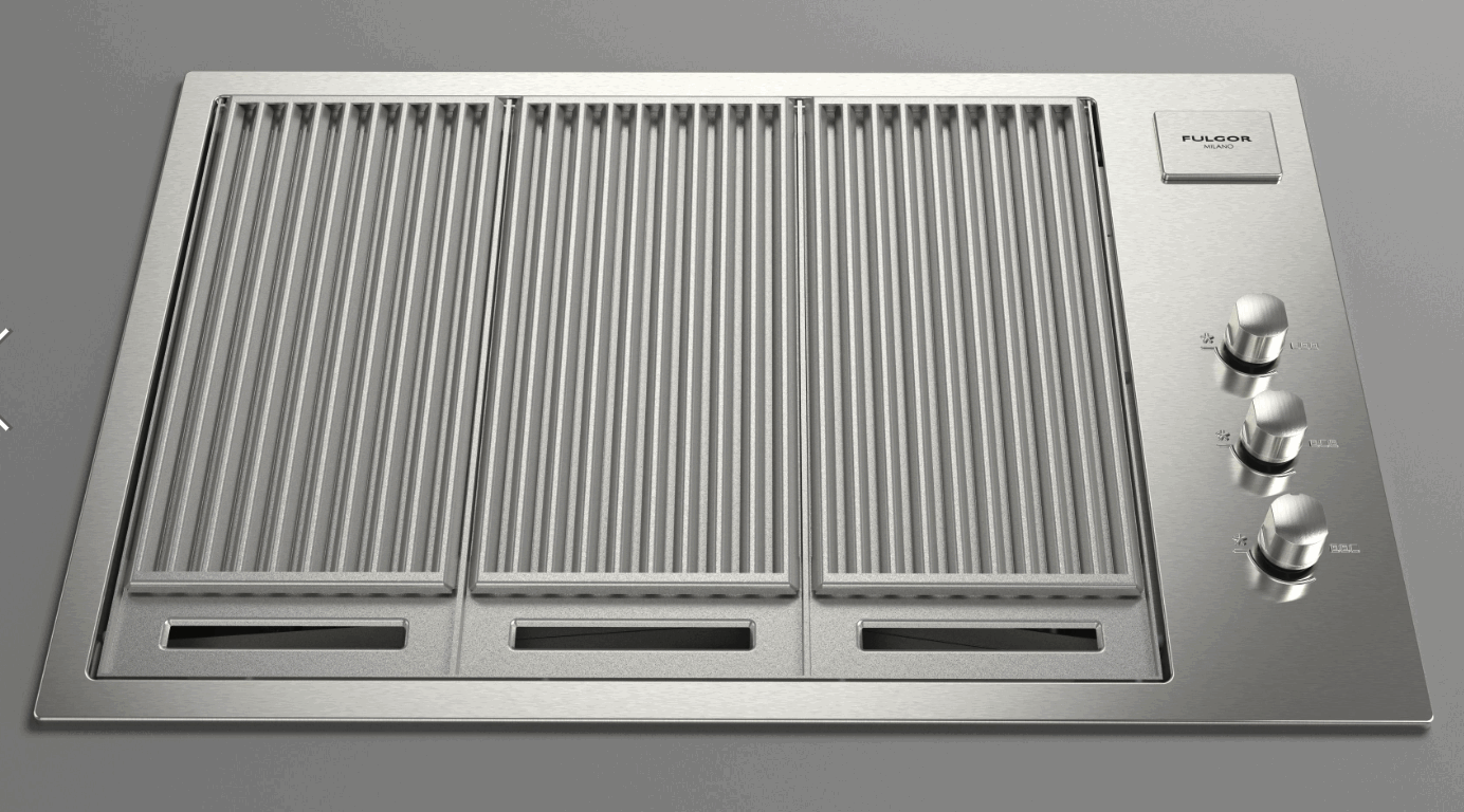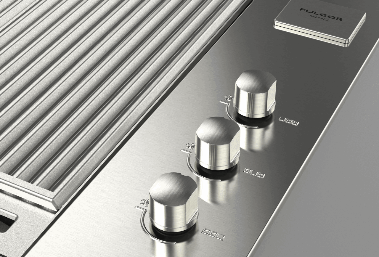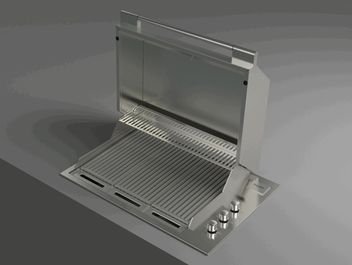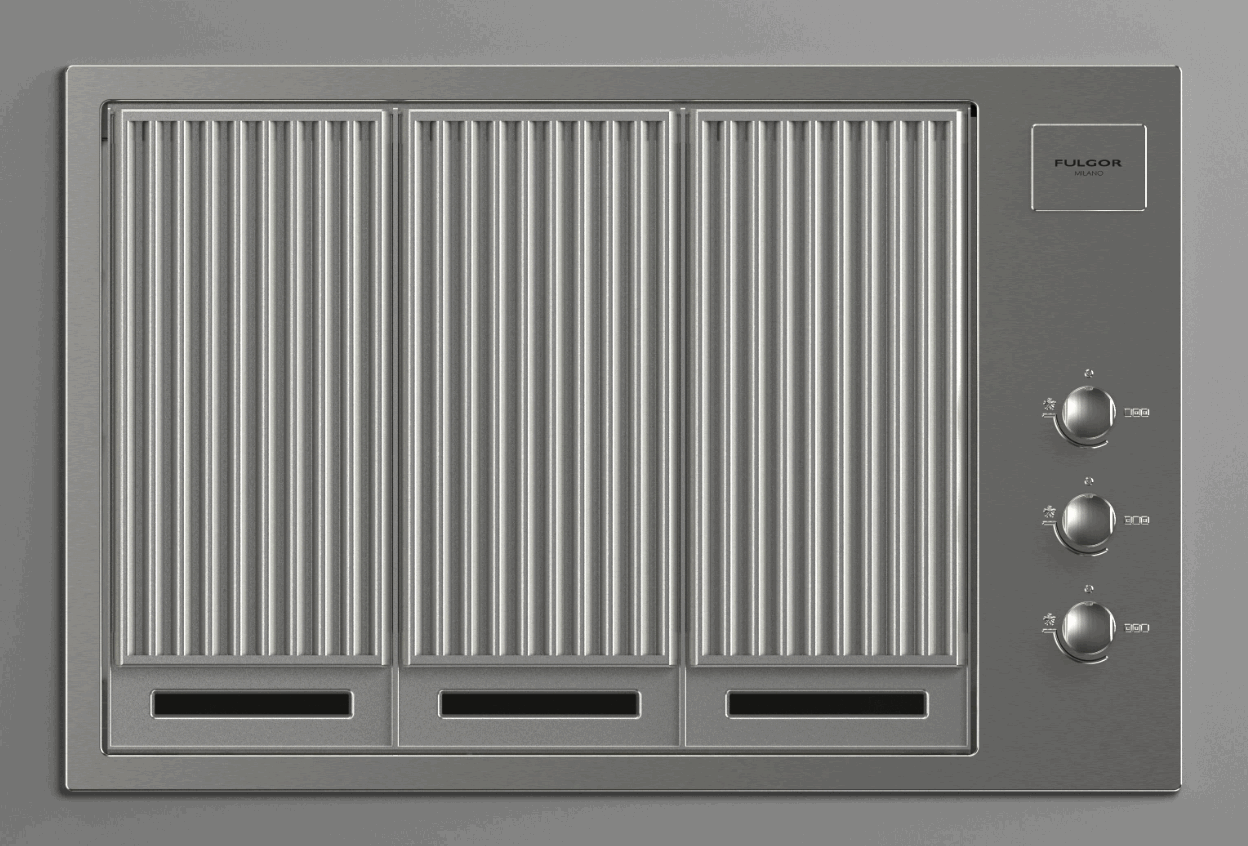 The Fulgor Milano built-in barbecue in AISI 316 stainless steel has 3 tubular gas burners, with a total power of approximately 11,4 kW. Special gas conversion nozzles are supplied as standard to allow the use with both NG and LPG. The in-line arrangement of the burners allows you to separate the cooking zones and also allowing the use of different temperatures. The BBQ is equipped with Gas-Stop safety devices. Among the accessories on request, in addition to a TappanYaki griddle and the different types of grates, two different lid models are available (high and low).